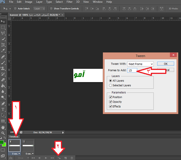 بعد از فعال سازی timeline مطابق شکل زیر عمل میکنیم